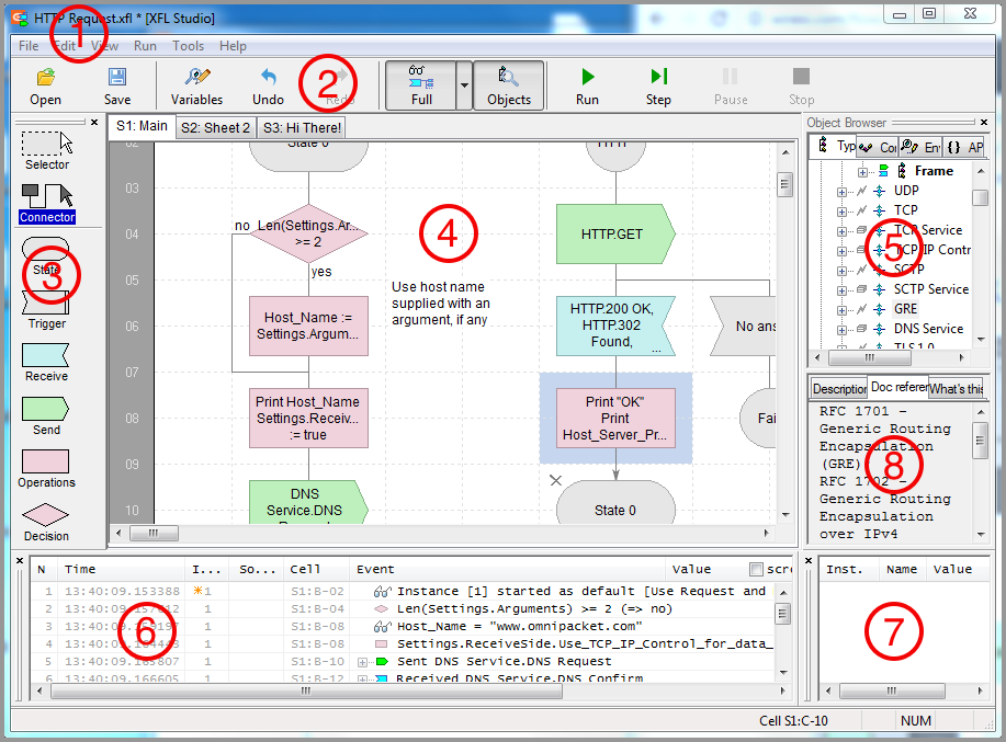XFL Studio or Studio is the main element of FlowCoder IDE. It allows to quickly build a packet driven state machine for live testing of supported networking stacks.